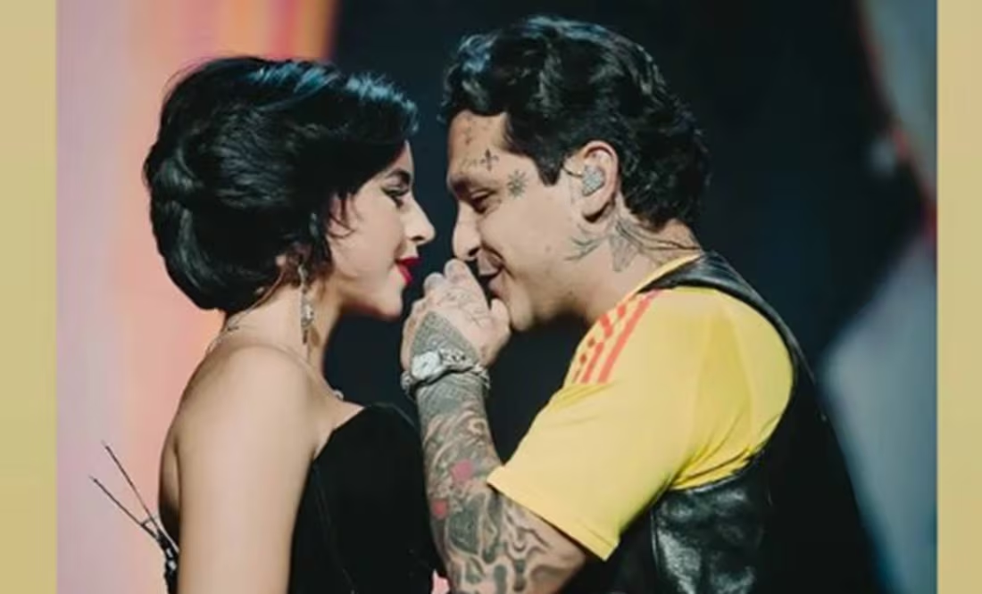 Christian, quien hace unos días cumplió 26 años aparece con una chamarra negra, cabello alborotado y bigote; el cantante de regional mexicano se muestra contento y sonriente mientras disfruta del momento junto a su esposa y amigos.