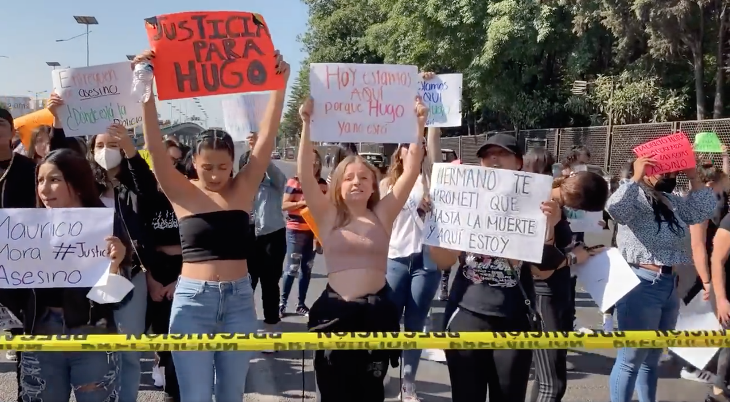 Durante la protesta, que lleva ya nueve horas, los familiares de Hugo mostraron videos en los que se observa el momento en que el joven se desangra, mientras es sostenido por un hombre identificado como Mauricio “N”, guardia de seguridad del lugar. También compartieron videos posteriores, en los que se escuchan reclamos dirigidos al señalado por parte de otros asistentes a la fiesta.